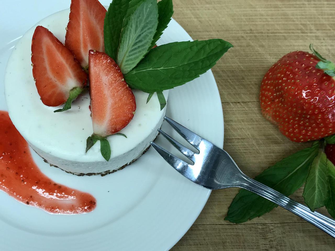Värsked maasikad, kohupiim*, vahukoor*, zelatiin, sool, suhkur, vaniljepasta, taluvõi*, küpsised