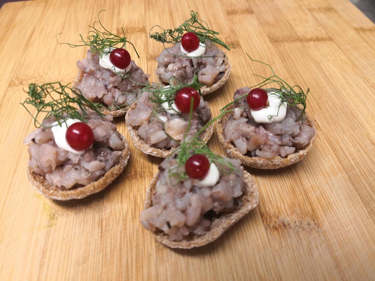 HEERINGA-HAPUKURGI-SIBULA TARTAR RUKKILEIVA TOASTI'L