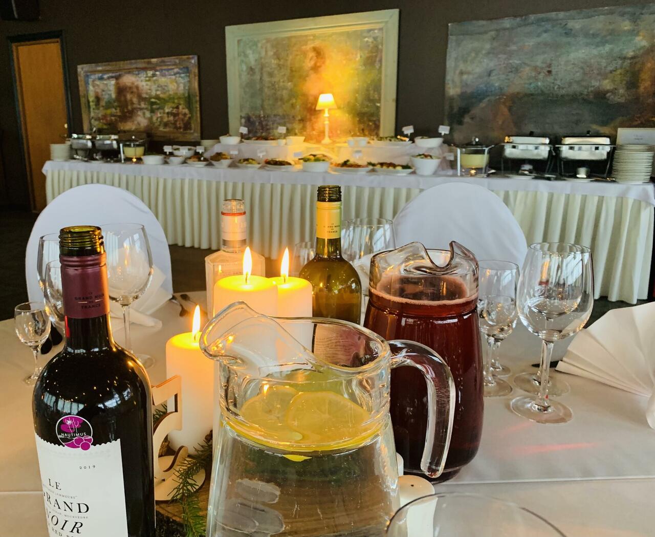 Hind 38.00€/inimese kohta, külm toit ja joogid serveeritud istumislauas, soe toit serveeritakse vaagnatel, dessert ja soojad joogid buffet-lauas