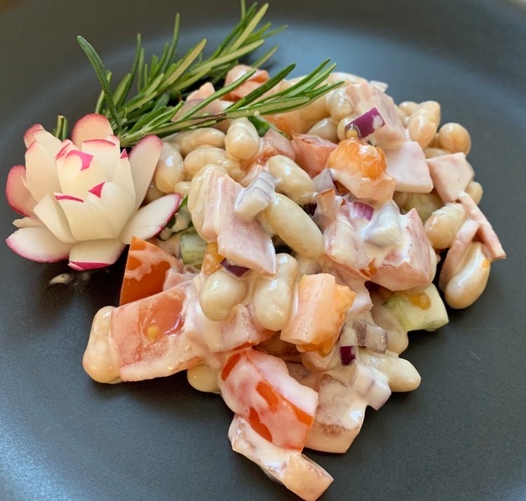 Oad, maasuitsusink, tomat, punane sibul, värske kurk, majonees*, hapukoor*, pipar, sool, suhkur
