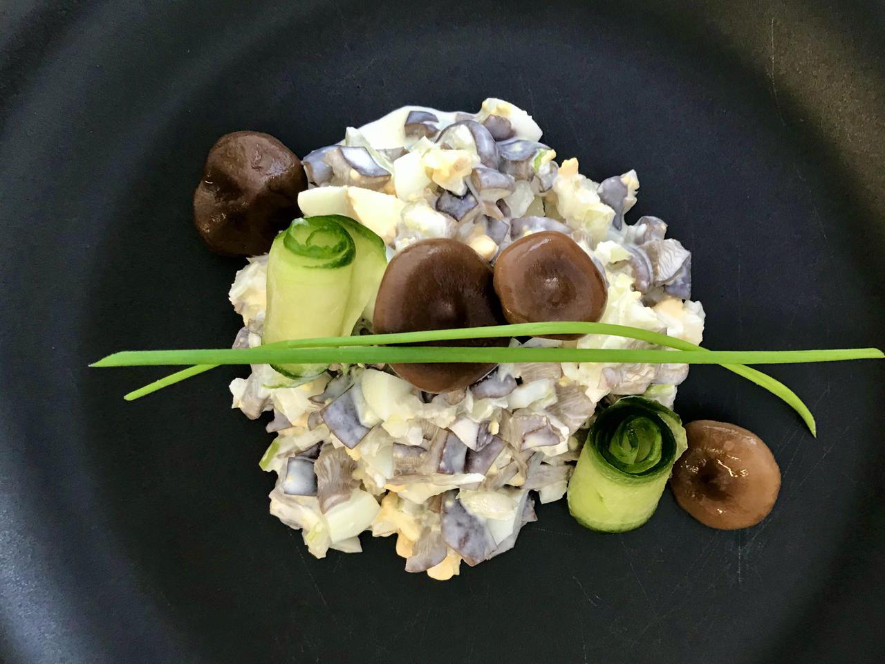 Metsaseened (männiriisikad), sibul, muna, hapukoor*, sool, pipar